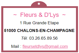 Fleurs & D'Lys, Artisan Fleuriste situé à Courtisols et à Châlons en Champagne dans la Marne (51) réalise pour vous toutes compositions florales selon vos envies et votre budget, moderne ou classique. La boutique est ouverte tous les jours du Lundi au Dimanche.